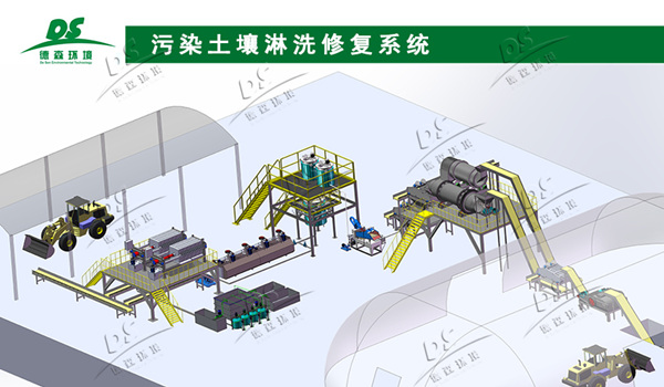 污染土壤淋洗修复主要是借助能促进土壤中污染物溶解或迁移的化学/生物溶剂,通过一系列物理、化学的综合处理工艺对污染土壤进行洗洁修复处理,将附着于土壤颗粒表面的重金属由固相低浓度污染物转移至液相,以便于后续集中处理。土壤中砂石骨料经淋洗分级处理后可回收利用,淋洗泥浆经脱水后泥浆固料若检验达标可安全回填、或进入热脱附修复系统进一步处理,脱水后废液进入水处理系统集中处理。整套淋洗修复系统可最大程度实现对污染土壤的减量化综合处理。其核心设备——圆筒式擦洗机在清洗物料过程中,物料与物料之间相互磨擦具有自磨效果,附加高弹性衬板增加物料表面擦洗次数使泥团砂石分离非 常彻底,效果显著,是满足对砂石泥团物料高清洁度需要的理想设备。